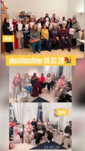 Ein besonderer Dank gilt dem entgegengebrachten Vertrauen, dass wir die Trainer:innen aus den kooperierenden Vereinen ausbilden durften. Afya hat nicht nur die Förderung aufgestellt, sondern uns auch größtenteils die Räumlichkeiten zur Verfügung gestellt und damit einen wesentlichen Beitrag zum Gelingen dieses Lehrgangs geleistet. Gemeinsam mit den NACHBARINNEN zeigt diese Kooperation, wie kraftvoll und wirkungsvoll Zusammenarbeit zwischen Vereinen sein kann – zum Wohle von Eltern und Familien. Wir freuen uns sehr auf zukünftige gemeinsame Projekte und weiteres gemeinsames Wirken.